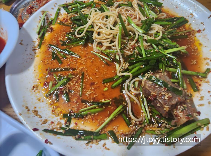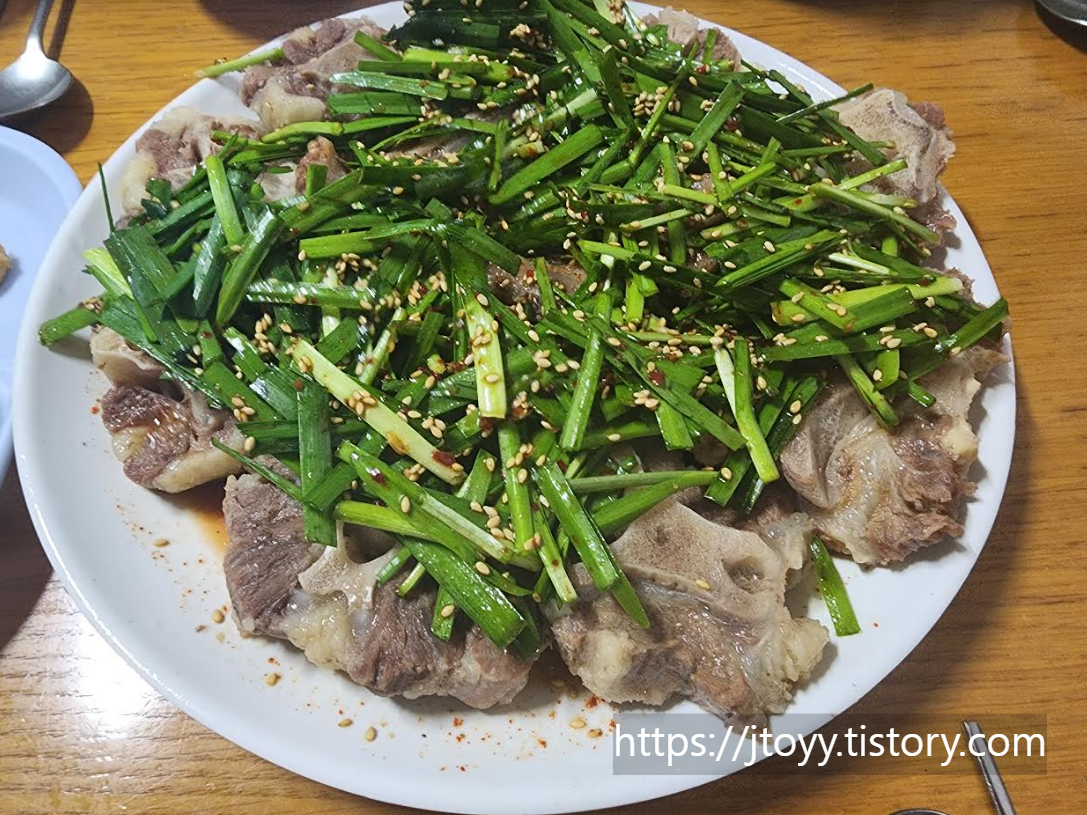 평소에 꼬리고기를 좋아하지 않는데 고기에 올려진 부추와 향신료가 정말 조화롭게 어우러져요.