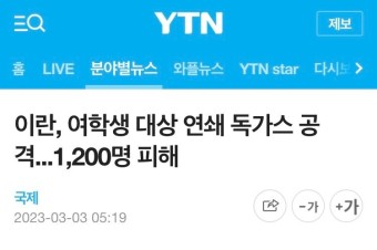 (서울=연합뉴스) 장재은 기자 = 여고생에 대한 독가스 공격이 계속되면서 이란 사회가 혼란에 빠져 있다.