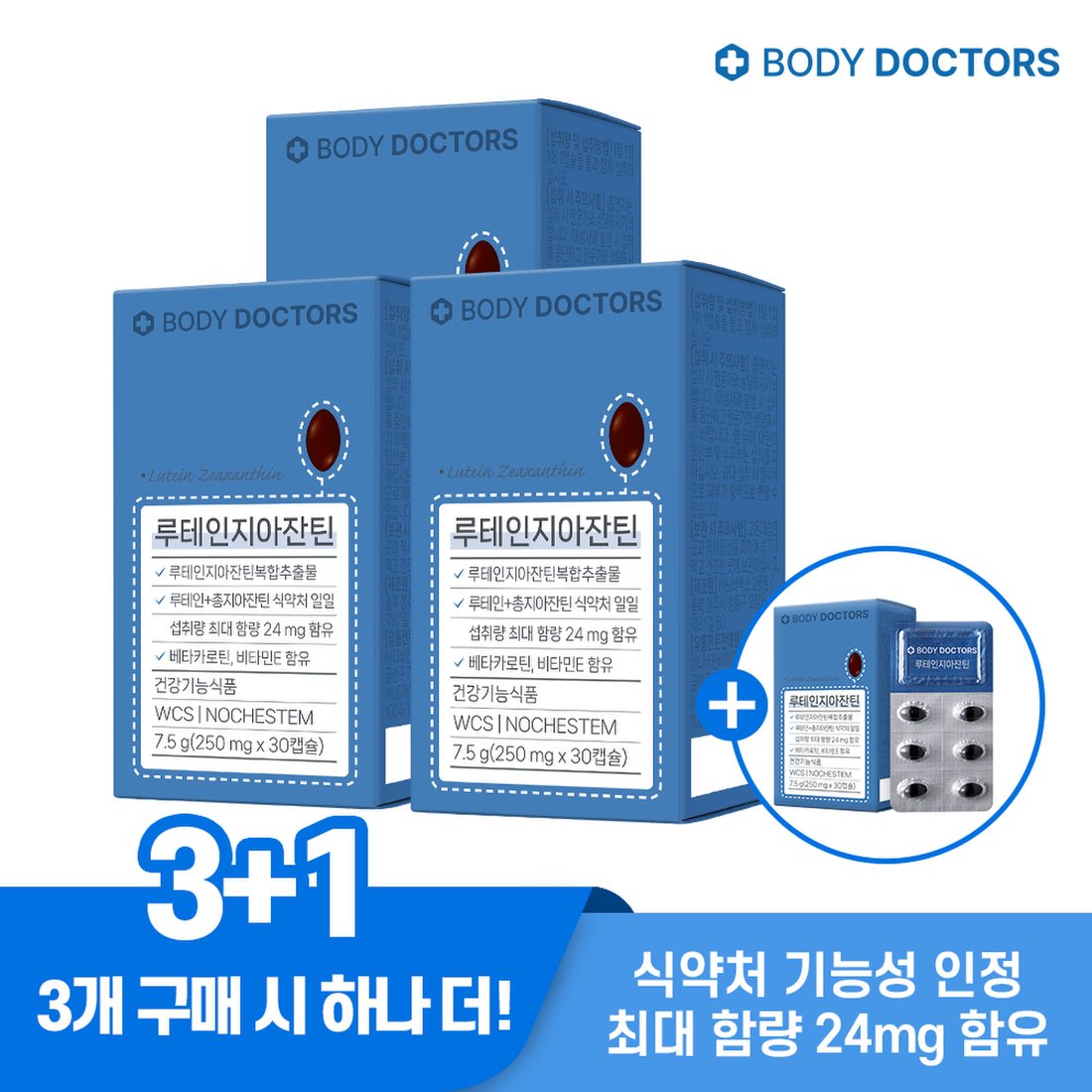 바디닥터의 루테지아잔틴은 황반의 중심 성분인 제아잔틴까지 함유하고 있습니다. 노화로 인해 감소할 수 있음 밀도 유지 눈 건강 유지에 도움 1일 최대섭취량인 황체형성호르몬 24mg이 함유되어 있어 하루 1캡슐만 섭취하면 되며, 매 끼니 때마다 복용하지 않아도 됩니다. 황체형성호르몬의 원료를 확인하셨나요?