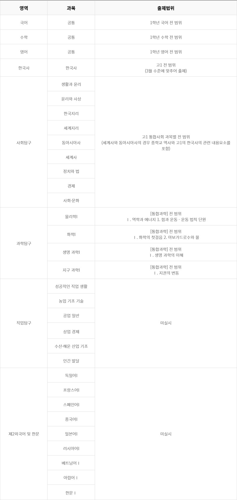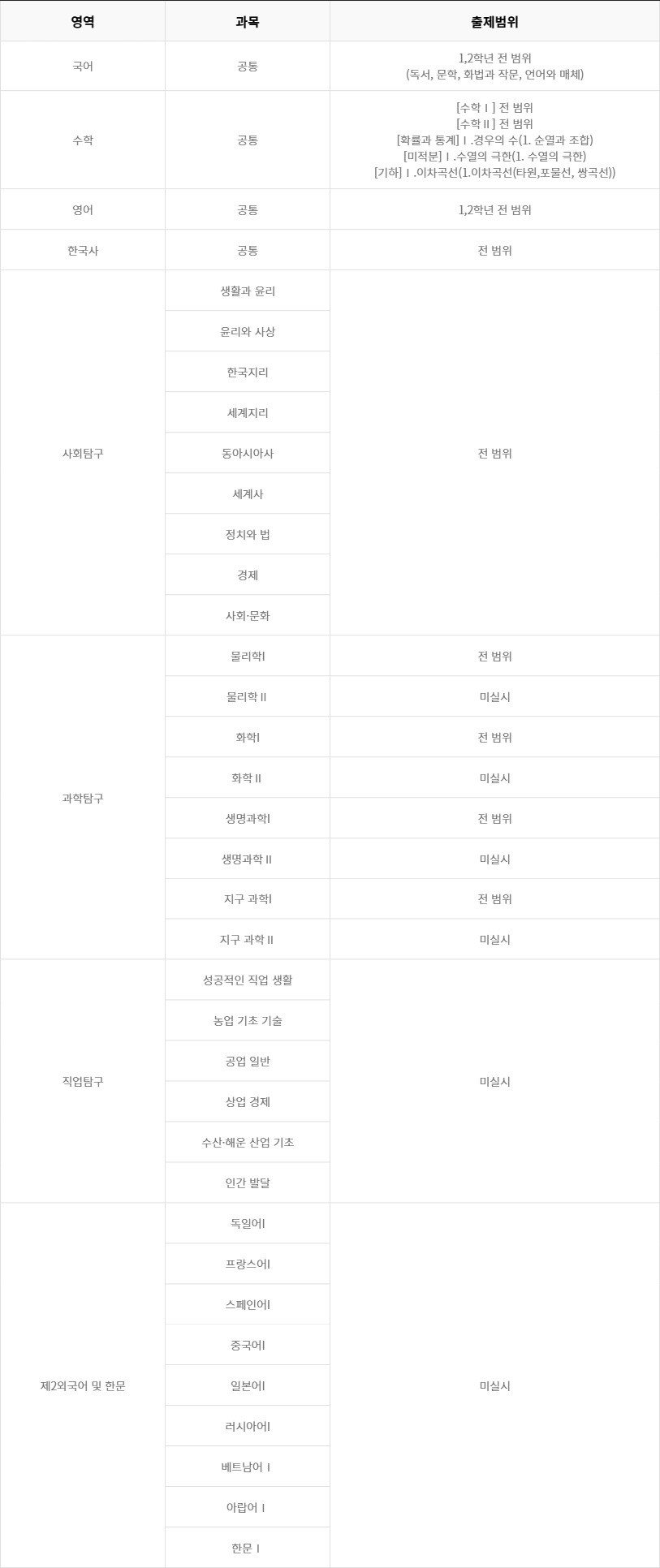 | 고등학교 3위 | 한국교육과정평가원 | 전체 범위 | ||