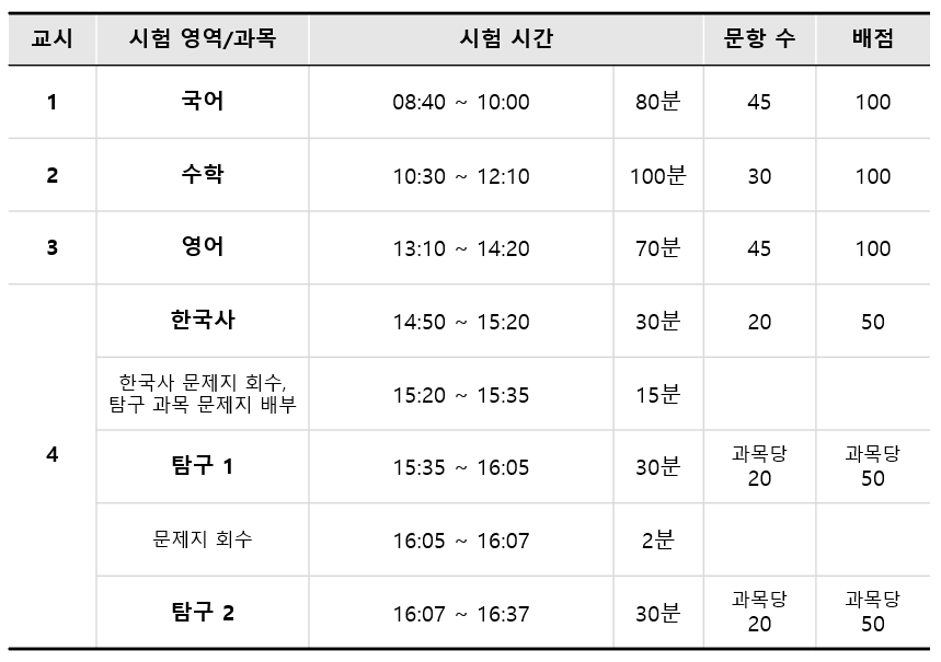 모의고사 시간표