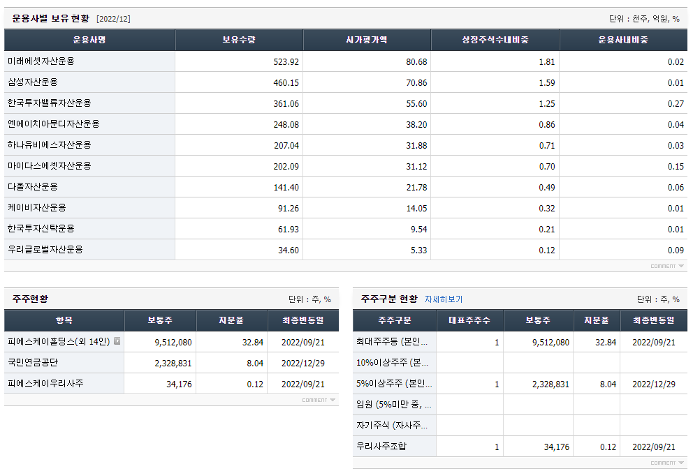 단기적으로 매매를 하려면 주주현황 정보가 필요없지만, 장기적으로는 기업현황을 조회하고 분석할 때 대주주의 지위와 능력도 함께 고려하는 것이 필요하다. 대주주들을 직접 만날 수는 없더라도 이들이 어떻게 구성되어 있는지 살펴볼 필요가 있다.